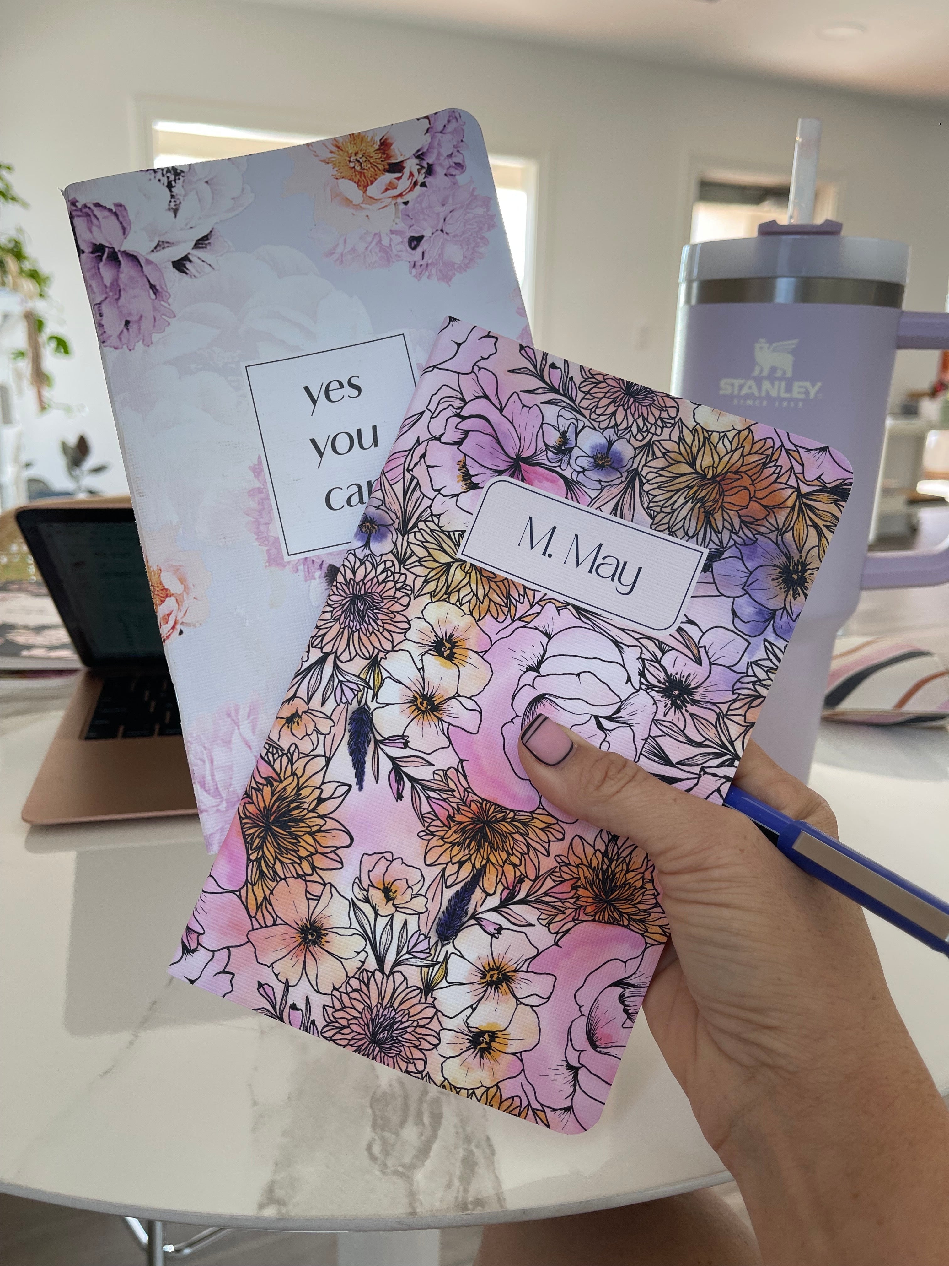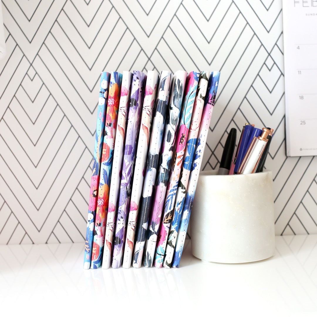 Our flagship product is the same as it was when the company first started in 2009. Pick your pattern and personalize the cover and inside pages. Select from a variety of inside journal pages like dot grid (great for bullet journaling), agendas, prayer journals, meal planners and make it your own!